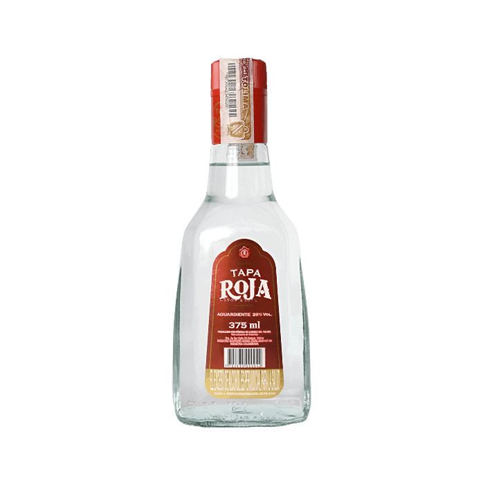 Aguardiente Tapa Roja del Tolima 375 ml. Versión mediana del tradicional aguardiente colombiano, ideal para disfrutar solo o en reuniones.