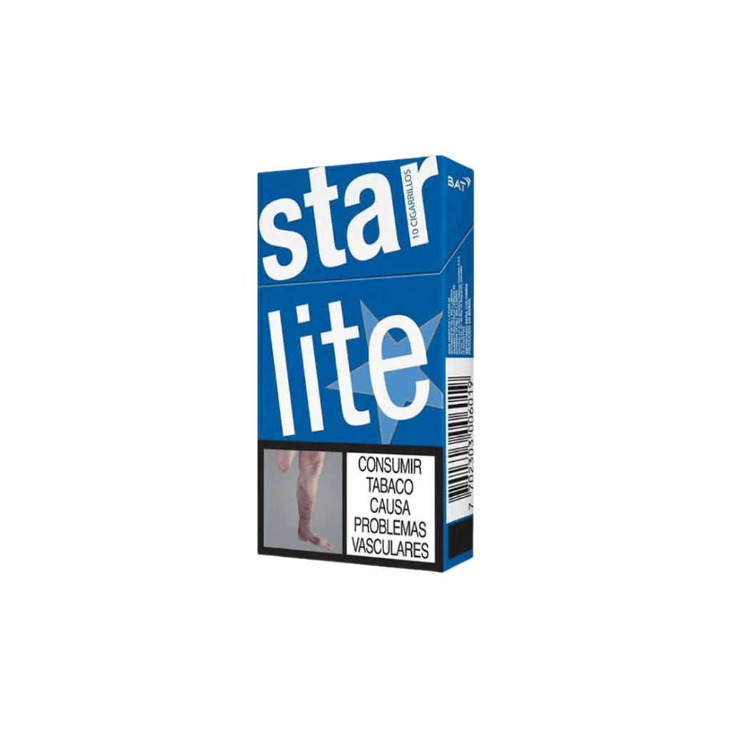 Cigarrillos Starlite en presentación de 10 unidades, con un sabor suave y equilibrado.